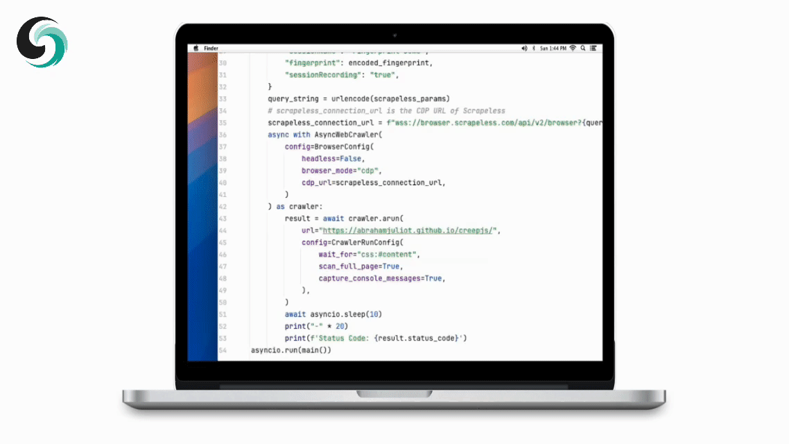 以下の例では、Crawl4AIをスクラペレスクラウドブラウザに迅速かつ簡単に接続する方法を示します: